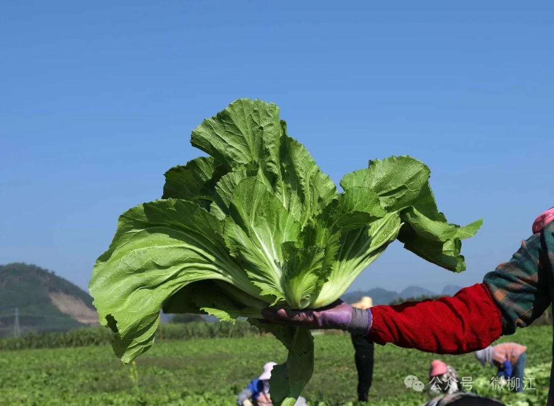 10月31日,记者走进位于高平村平地屯的蔬菜种植基地看到,翠绿的包心芥菜郁郁葱葱、长势喜人,一片生机盎然。村民们在田间地头忙着采摘、翻晒、搬运包心芥菜。这些包心芥菜将于当天下午运往全国各地的蔬菜批发市场。