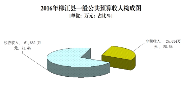 在财政收入中,税收收入(含上划)完成148,153万元,完成预算的100.9%,同比增长7.2%,占财政收入的85.7%;在一般公共预算收入中,税收收入完成61,662万元,占一般公共预算收入的71.4%;非税收入完成24,643万元,占一般公共预算收入的28.6%。(详见表一)