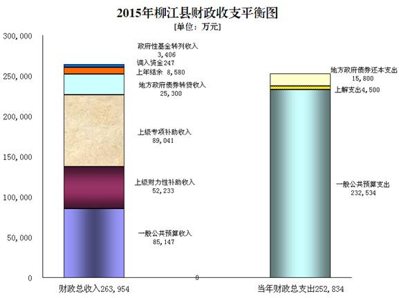 2015年全县财政总收入263,954万元,当年财政总支出252,834万元,收入和支出相抵,年终结余11,120万元。