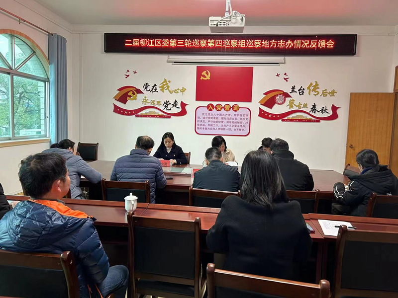 根据巡察工作领导小组的安排,2023年2月16日,区委第四巡察组向区地方志办反馈巡察情况。巡察组副组长周业潇同志代表巡察组向区地方志办领导班子进行了反馈,受区委巡察工作领导小组委托,巡察组组长李庚秀作讲话并提出整改要求,区地方志办党支部书记、主任韦殿仕主持会议并作表态发言。