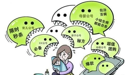 据中国青年报的调查,六成受访家长认为自媒体无用信息过多,近半数家长认为存在标题党现象。媒体观察发现,不少育儿自媒体存在“挂羊头卖狗肉”的现象。不少公号名称虽然带有“育儿”的字眼,但点开公众号,与育儿相关的内容寥寥,所谓的科普文章点开后,却是营销软文,接入的是购物平台,更有一些“妈妈类”公号,团购的商品从婴幼儿用品到化妆品都有。