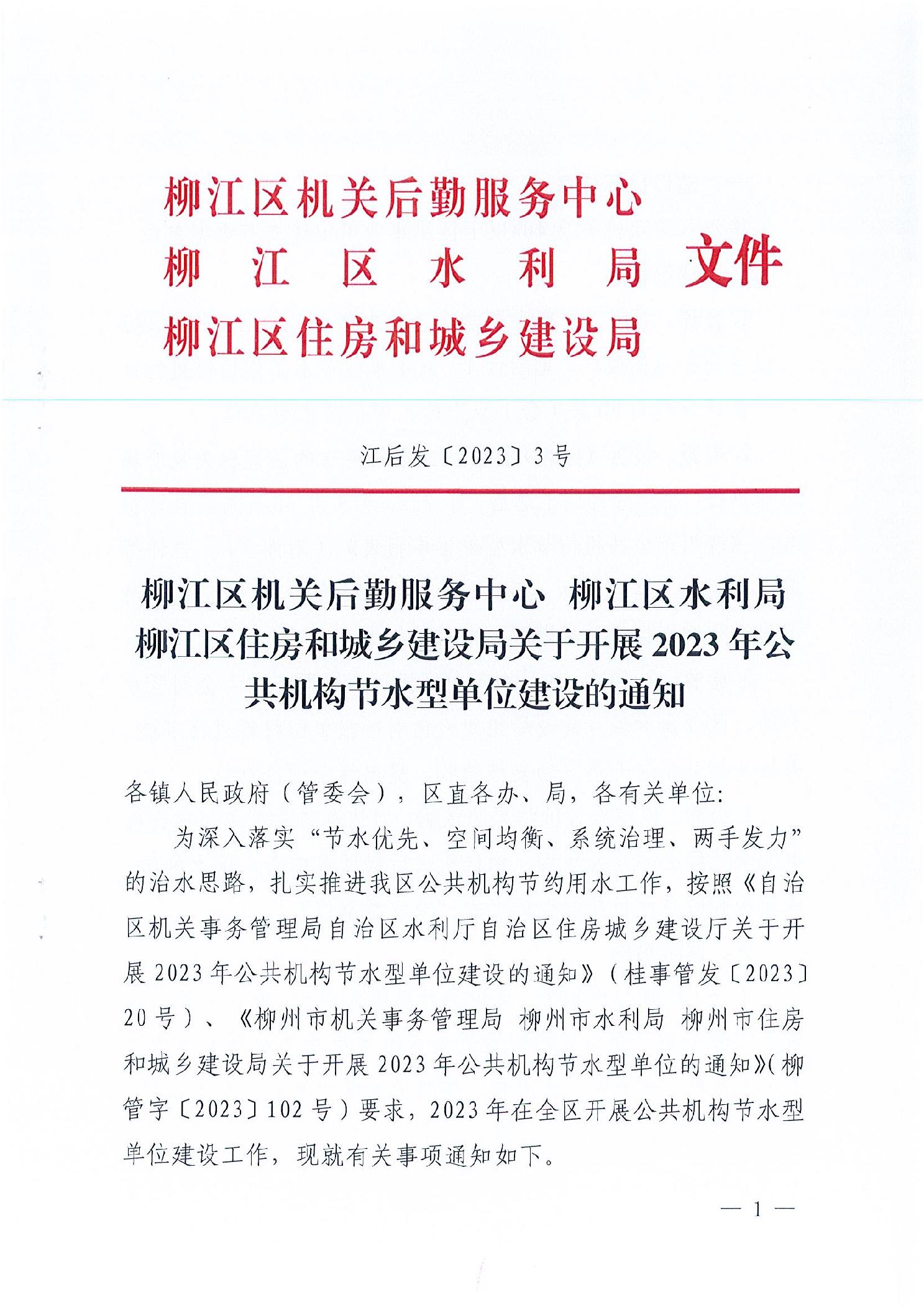 江后发〔2023〕3号关于开展2023年公共机构节水型单位建设的通知