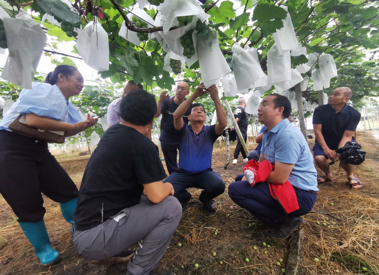 2022年6月29日,由广西壮族自治区农业科学院葡萄与葡萄酒研究所所长、广西南方葡萄科技团队首席专家谢太理研究员带领的专家组一行3人来到柳江区成团镇鲁比葡萄片区指导当地葡萄生产。