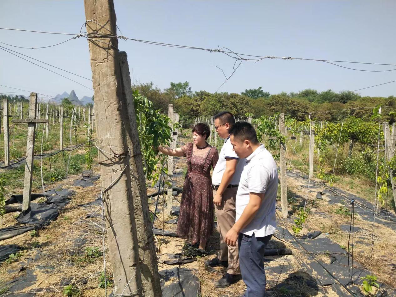 一行人随后还到百香果种植基地查看百香果种植情况。通过负责人的介绍,了解到基地种植已经形成一定的规模,通过实地调研,发现存在土质改良,基础设施改造,技术更新等问题还有待加强。