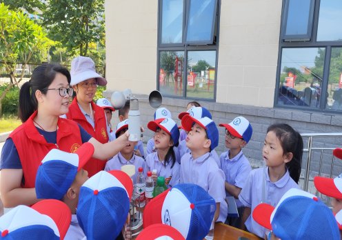 在气象观测站,气象预报员耐心地讲解气象观测仪器与设备的观测方法和原理,以及如何采集数据、分析气象状况等专业知识。温湿度传感器、雨量传感器、风向传感器、风速传感器、深层地温传感器…这一系列气象观测的仪器,一下子就激发了孩子们浓厚的学习兴趣与求知欲。