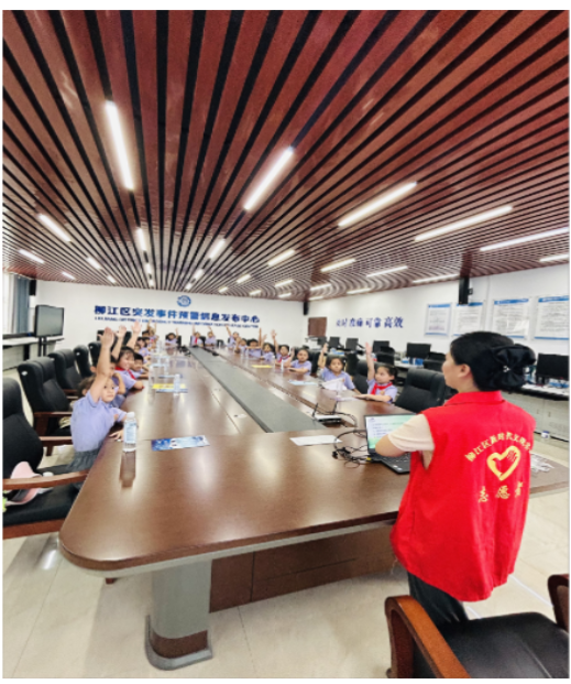 随后,学生们兴致勃勃地参观了突发预警信息发布中心,了解各类天气图及天气预报制作发布流程,学习各类天气现象及科学防范气象灾害等知识。通过观看气象科普宣传片、气象知识抢答等形式,学习气象科学常识。