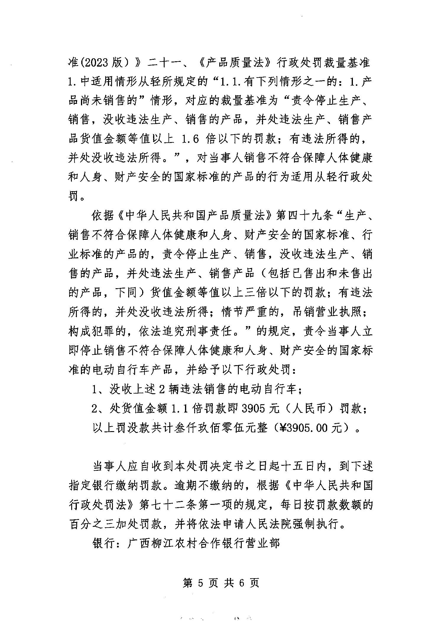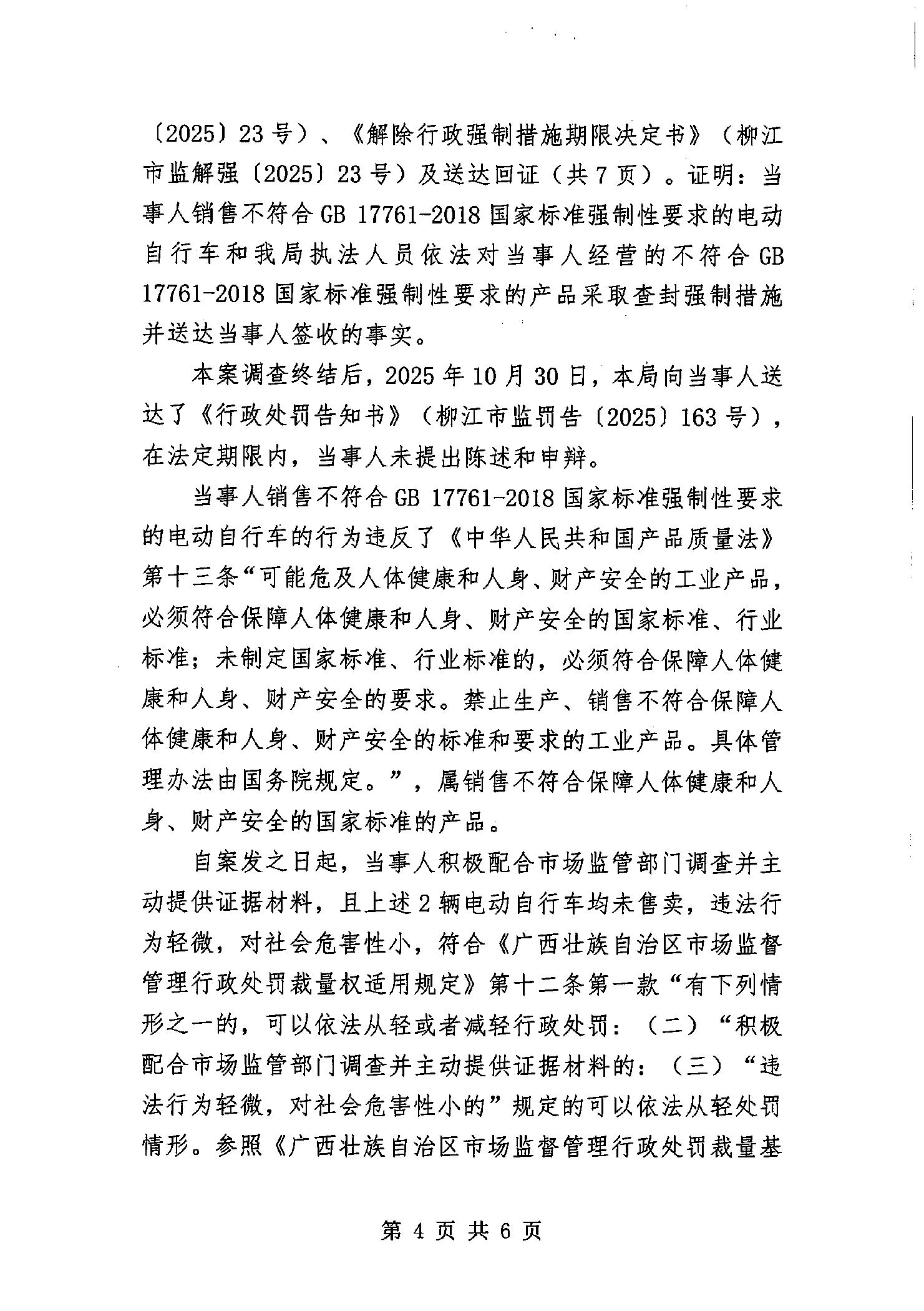 行政处罚决定书(柳江市监处罚[2025]147号)