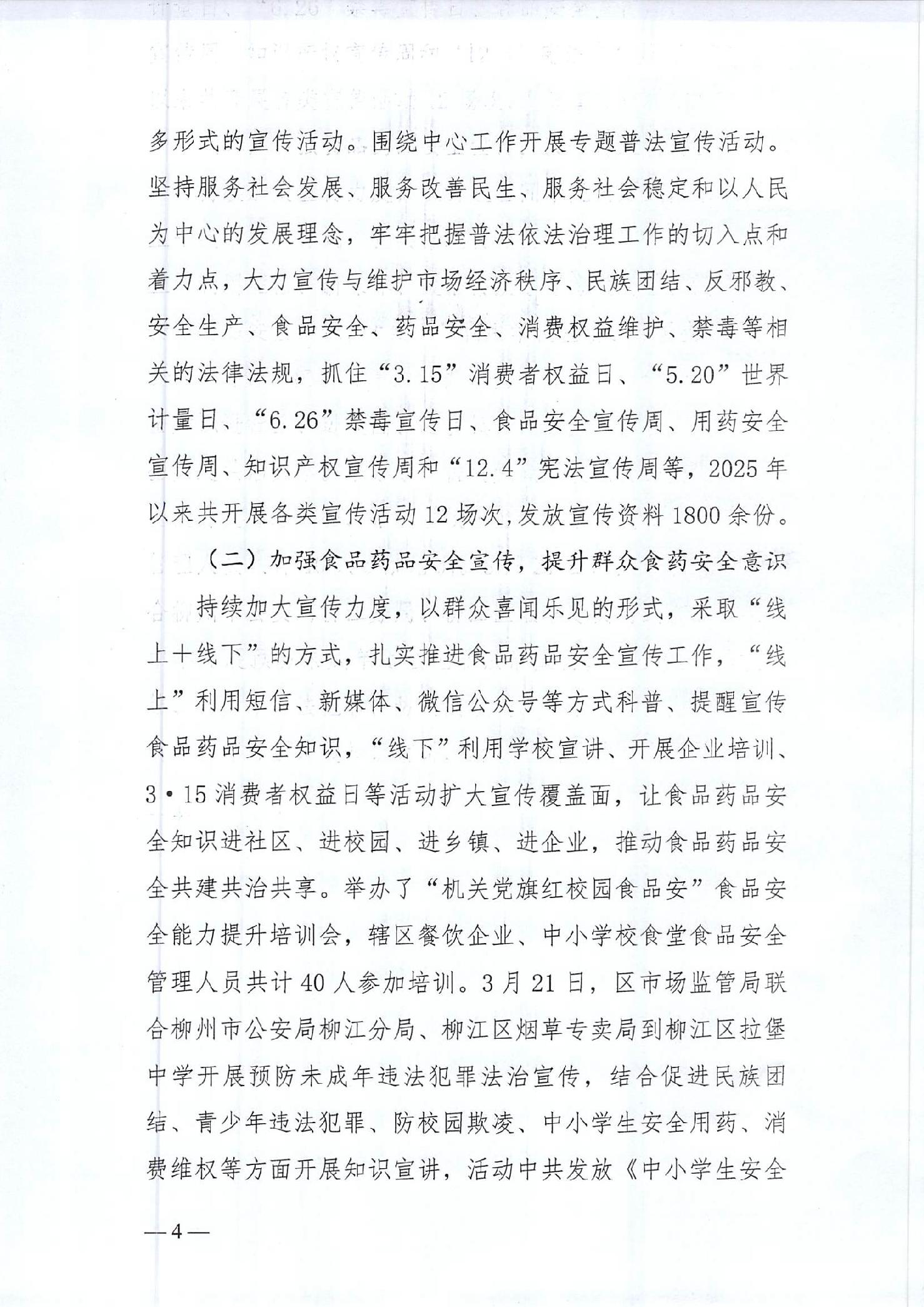 柳州市柳江区市场监督管理局2025年普法责任落实情况报告