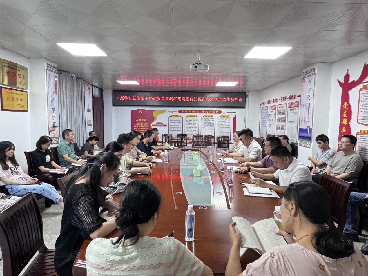 区委第四巡察组全体成员、区商务局在家领导班子成员参加会议,派驻纪检监察组负责人、区商务局其他干部列席会议。