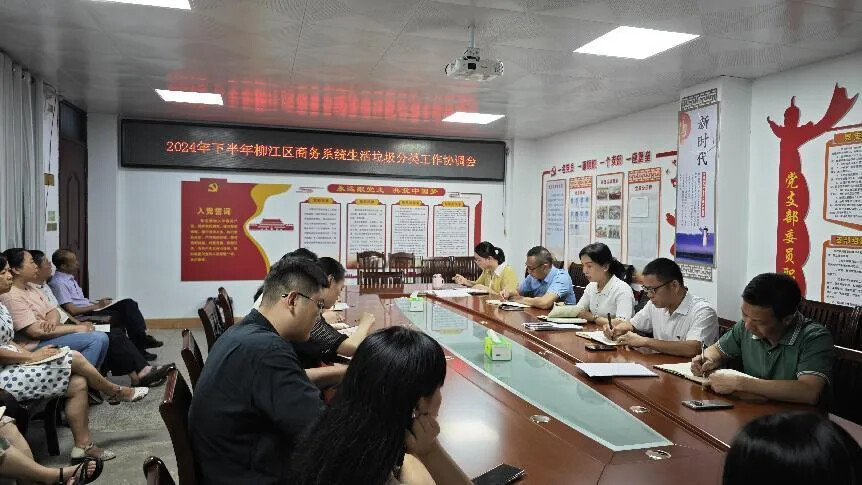 近日,柳江区商务局隆重召开了2024年下半年管辖行业生活垃圾分类工作协调会议,会议紧密围绕本年度垃圾分类工作的核心任务展开,旨在提升行业垃圾分类成效,推动垃圾分类工作向高质量发展迈进。会上,与会人员深入探讨了当前存在的问题,积极寻找差距,共同谋划了切实有效的应对措施。