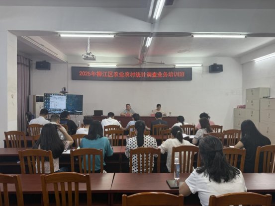 6月6日上午,柳江区统计局开展2025年柳江区农业农村统计调查业务培训。柳江区统计局局长韦璟辉出席会议,局党组成员、调查队队长张晓芳主持会议,各镇分管领导、统计助理等17人参加会议。