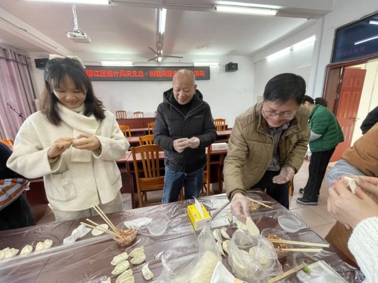 活动中,银行工作人员向在座职工宣讲反诈骗知识和理财知识,进一步筑牢统计干部反诈骗意识和能力。宣讲结束后,工作人员将提前准备好的饺子馅、面皮等食材整齐摆放,大家围桌而立,撸起袖子大显身手。干部职工们边包饺子边分享生活趣事;部分“骨干”手把手教学,收获丰硕“成果”。包出的饺子形态各异,却都承载着节日的喜悦和新一年的期盼。最终,大家品尝着亲手包制的饺子,在欢乐中结束了本次活动。