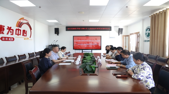 10月25日,右江民族医学院与柳江区人民医院科研项目签约仪式在我院会议室举行。右江民族医学院附属医院感染性疾病科吕建楠主任、覃凤飞护士长、邓凤莲医师,柳江区人民医院党委委员、副院长韦蒙、潘忠敏以及科教科、全科医学科、感染性疾病科等相关科室负责人参加仪式,仪式由潘忠敏主持。