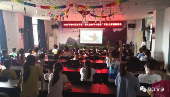 8月1日,柳江区图书馆“萤火虫亲子小剧场”推出八一建军节红色主题观影活动,近百名小观众与爸爸妈妈一起,观看抗战故事,厚植爱国情怀。