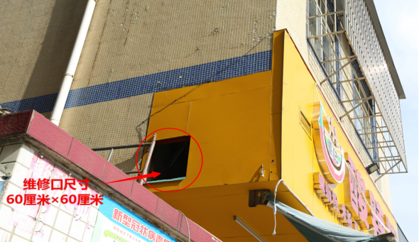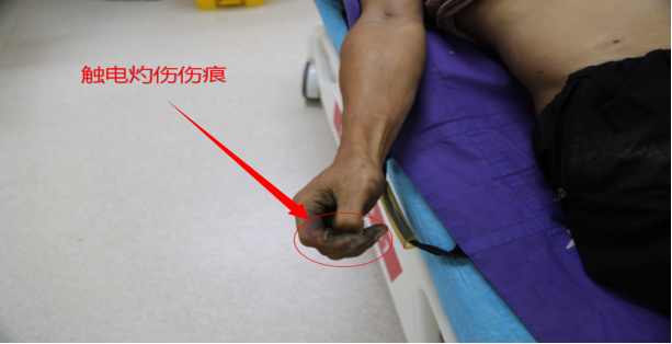 事故地点位于柳江区拉堡镇基隆综合区兴国大道18号金兴苑B81层商铺(图1),经现场勘查,该广告牌距离地面水平高度约3.14米,长约6.2米,宽约1.45米。广告牌北面有一个维修入口,尺寸约为60×60厘米(图2、图3),死者莫某林尸体右手手掌有明显的电击伤痕迹(图4),事故现场的地面上有被烧焦的电线(图5、图6)。