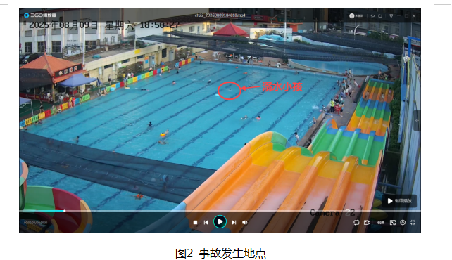 经调取现场监控视频、查看医院出诊记录单及对现场当事人调查询问,查明了事故发生经过:2025年8月9日18时15分,覃某芝带其儿子韦某耀、女儿韦某恬(1岁4个月)通过微信扫码购买了1张门票进入柳州市柳江区拉堡镇南大街149号体育中心水上乐园,入园时自带了1个游泳圈。入园后韦某耀进入浅水区玩耍,覃某芝在浅水区岸边照顾其女儿并看护着韦某耀,大约5分钟后,韦某耀脱离了其母亲的视线范围。