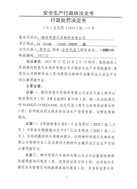 行政处罚决定书 (江)应急罚〔2025〕执二-2号