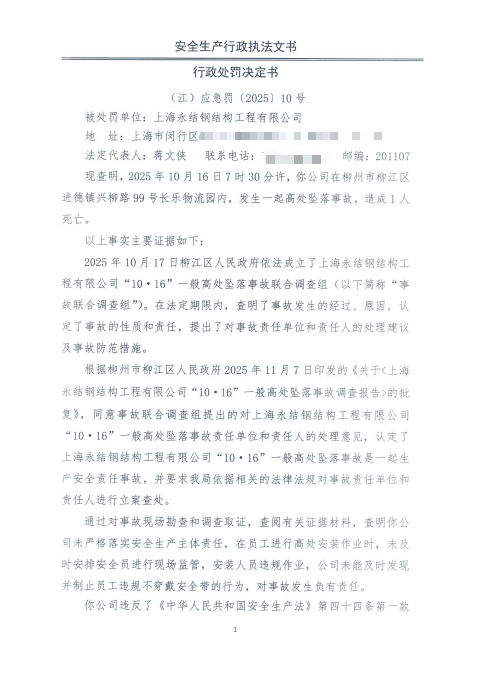 行政处罚决定书 (江)应急罚〔2025〕10号
