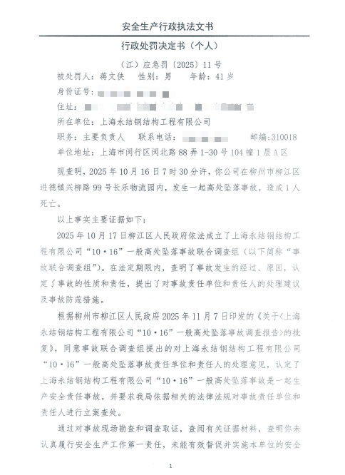 行政处罚决定书 (江)应急罚〔2025〕11号