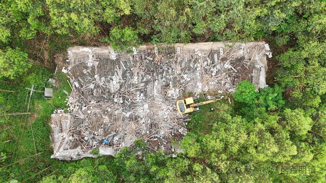 此前我镇执法人员通过现场勘查、查阅土地档案等方式,确定该羊舍属于违法建筑。随后,执法部门按照程序依法向羊棚主余某等人下达自行拆除公告,告知其占用林地行为的违法性以及新建违建必拆的严肃性,但余某等人并未认识到问题严重性,拒绝配合拆除整改。4月24日,我镇依法启动强制拆除程序,目前该违建已被拆除。