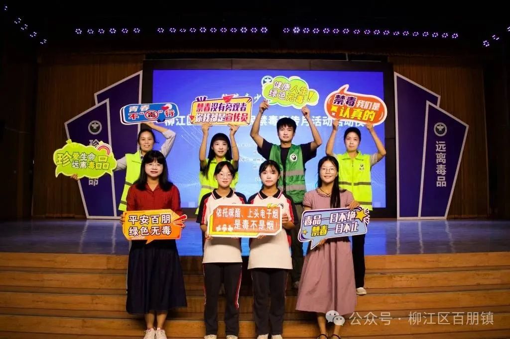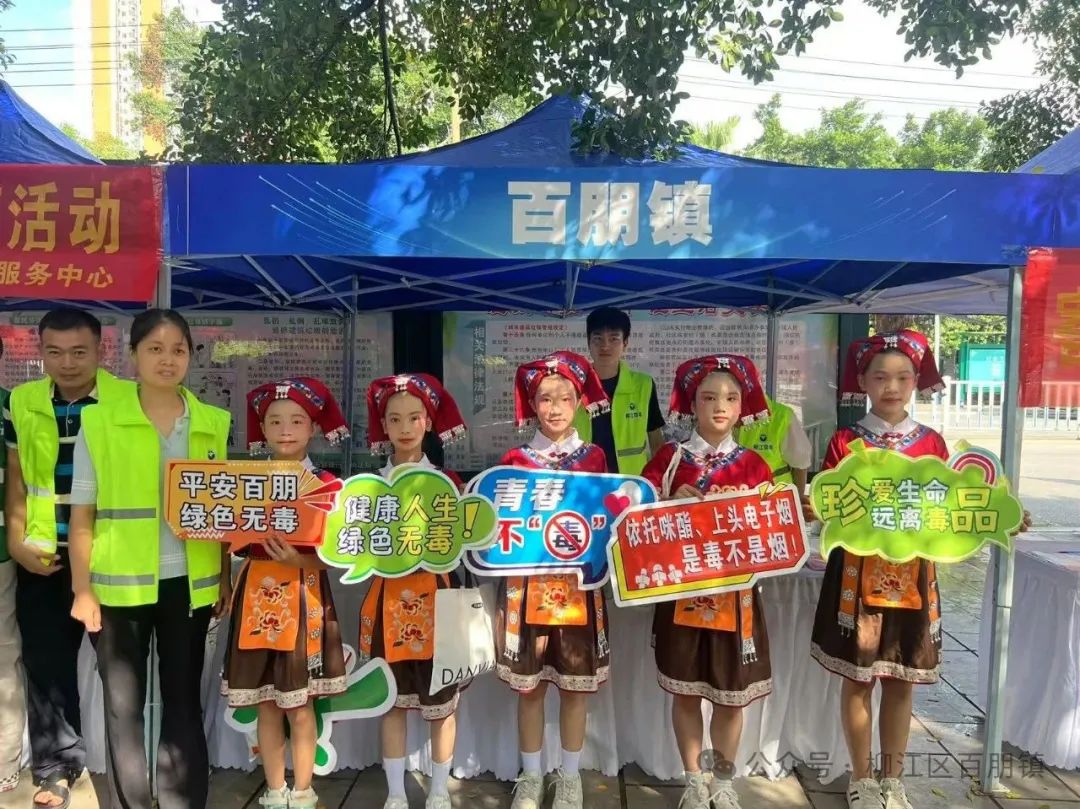 2025年6月是全国第15个"全民禁毒宣传月"。为进一步加强青少年毒品预防教育工作,提升青少年防范药物滥用意识,6月12日,由广西第二强制隔离戒毒所与柳江区禁毒委员会联合主办的"防范青少年药物滥用"柳江区2025年全民禁毒宣传月活动启动仪式隆重举行,百朋镇参与活动演出,并在展板区开展禁毒宣传活动。
