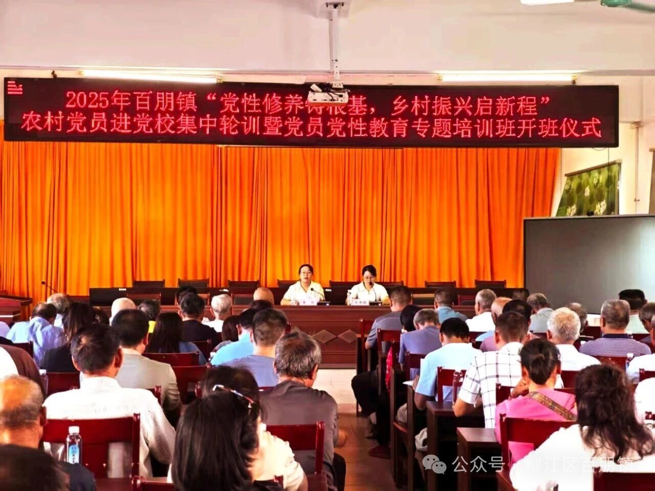 为进一步提升党员的政治素养和履职能力,锻造一支政治过硬、本领高强的党员队伍,近日,百朋镇分两期举办了“党性修养铸根基,乡村振兴启新程”农村党员进党校集中轮训暨党员党性教育专题培训班,全镇共计300多名党员参加培训。镇党委副书记李欢、镇党委组织委员兰丹妮出席开班仪式。