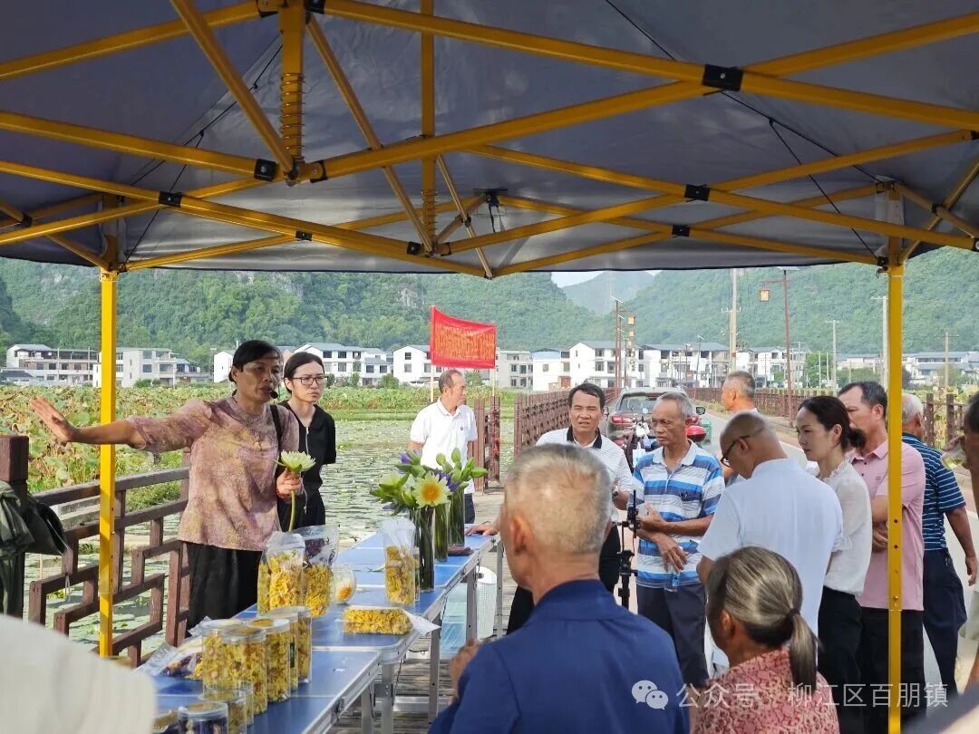 培训采用“课堂讲授+现场教学+结课讨论+自学”相结合的方式,既注重理论灌输,又强调实践导向。现场教学环节参训学员统一乘车前往百朋镇怀洪村下伦屯,参观新品种荷莲种植示范基地,听取广西壮族自治区亚热带作物研究所高级农艺师毛立彦和技术员覃向鲜的实操技术讲解,实地感受党建引领下农业产业发展的新成效。