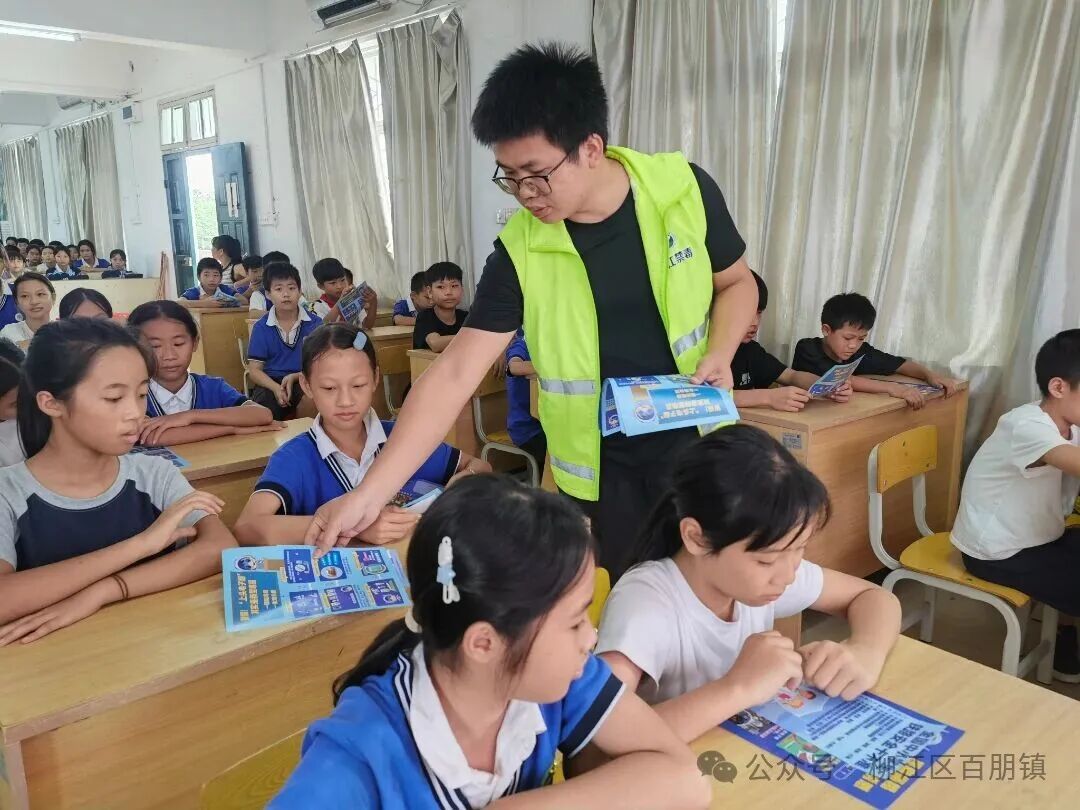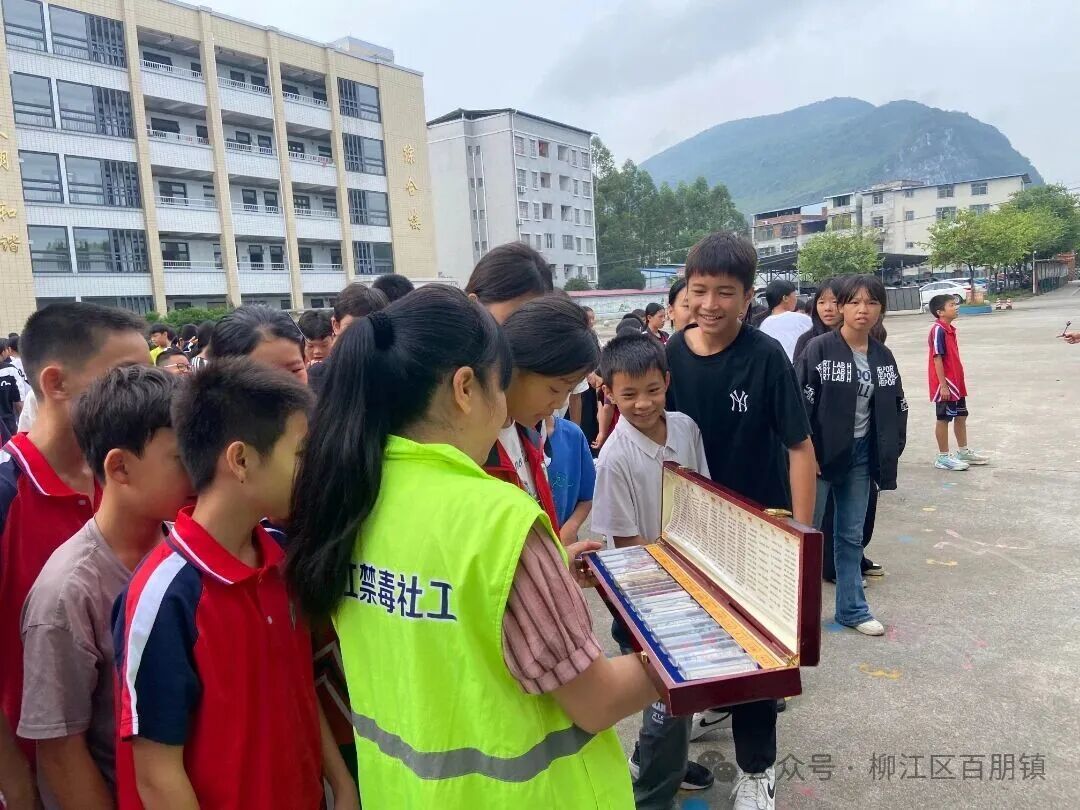 在百朋中心小学和百朋寄宿部小学,宣传活动同样精彩纷呈。百朋镇禁毒办联合百朋镇关心下一代工作委员会(关工委)、百朋妇联共同开展活动。关工委的宣讲师们为小学生们带来了生动有趣、互动性强的禁毒知识讲解。他们通过趣味问答等方式,用孩子们易于理解的语言,讲解了毒品的种类、危害以及如何保护自己不受毒品侵害。