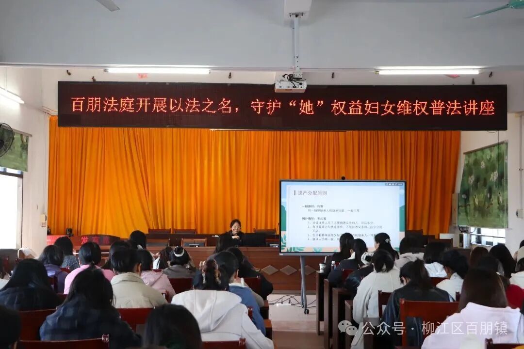 以法之名,护“她”权益。与会人员首先集中观看《中华人民共和国妇女权益保障法》宣传片,随后镇妇联邀请法庭工作人员开展“普法‘她’力量,守护千万家”专题宣讲,围绕婚姻家庭中的财产权益、维权途径等进行深入浅出的讲解,切实提升女性法治意识和维权能力。