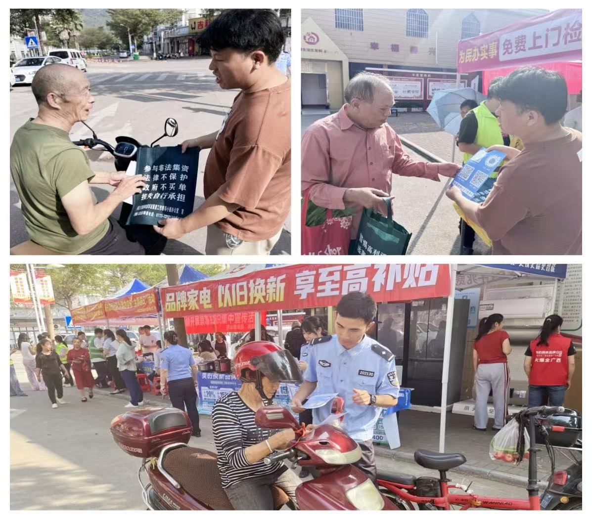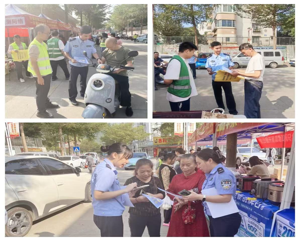 为进一步加大禁毒和反诈宣传工作力度,巩固穿山镇平安建设成效,11月15日上午,柳江区穿山镇平安法治办利用广西家电以旧换新补贴活动为契机,联合新兴派出所和新兴社区在柳兴糖厂职工生活区开展禁毒反诈集中宣传活动。