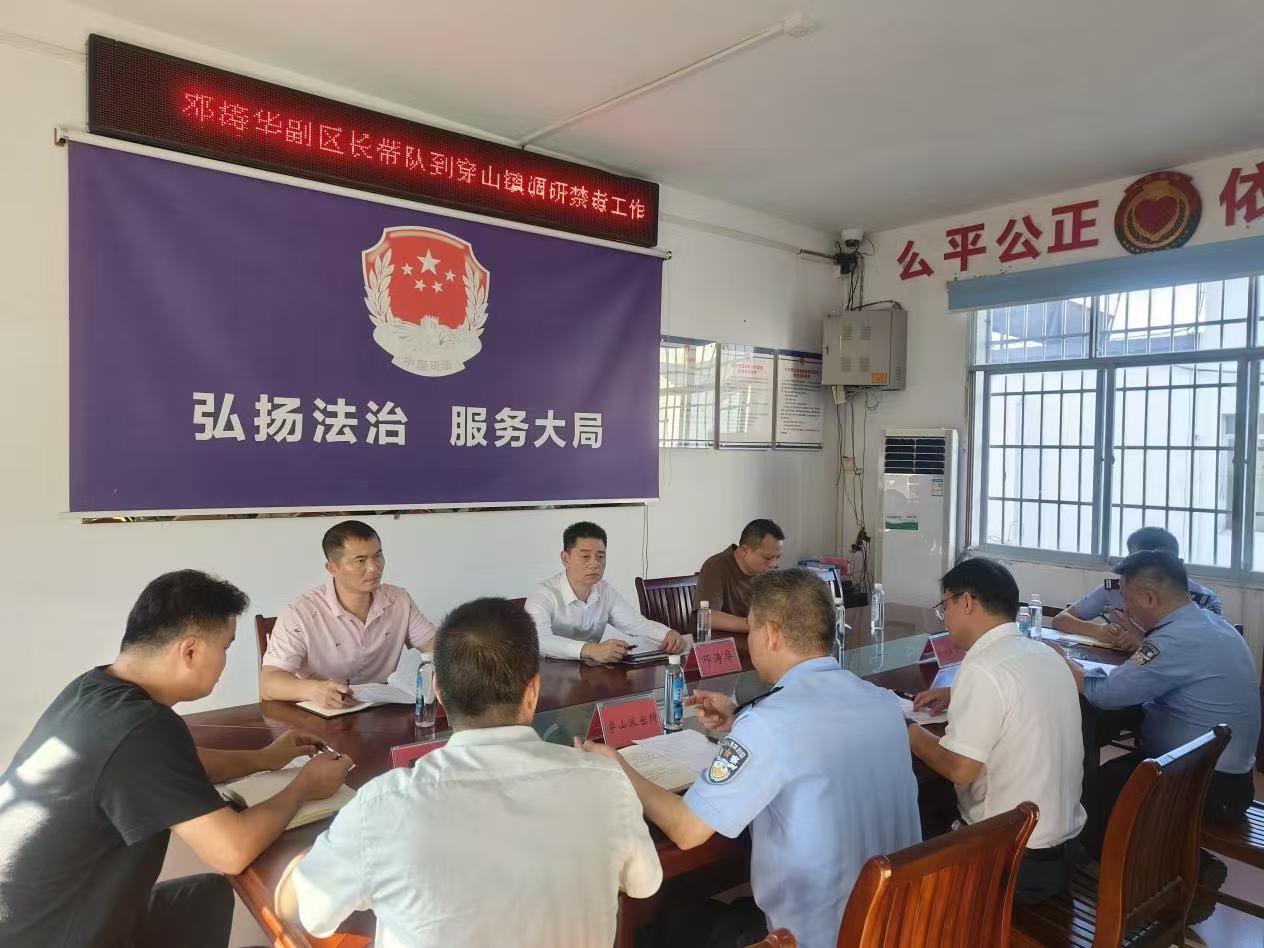 随后,召开调研工作座谈会,邓涛华副区长对穿山镇今年以来禁毒工作取得的进步表示肯定,同时就近期柳州市、柳江区的禁毒形势和工作要求对穿山镇今后禁毒工作提出意见,他强调,穿山镇在册吸毒人员基数较大,要把握禁毒工作重点,强化吸毒人员精准管控和摸排,全面落实社区戒毒(康复)、社会帮扶救助等措施,抓好重点人员、重点场所的走访排查和吸毒人员动态管控,做到底数清、情况明、信息准;要学会“走出去”和“引进来”,加强与区内外禁毒工作优秀单位和乡镇沟通联系,学习优秀经验,引进操作性可行与本镇实际适配的工作方法,提高自身业务工作水平;要加强禁毒工作台帐管理,多于细节处着手,确保档案台帐规范性、严谨性。