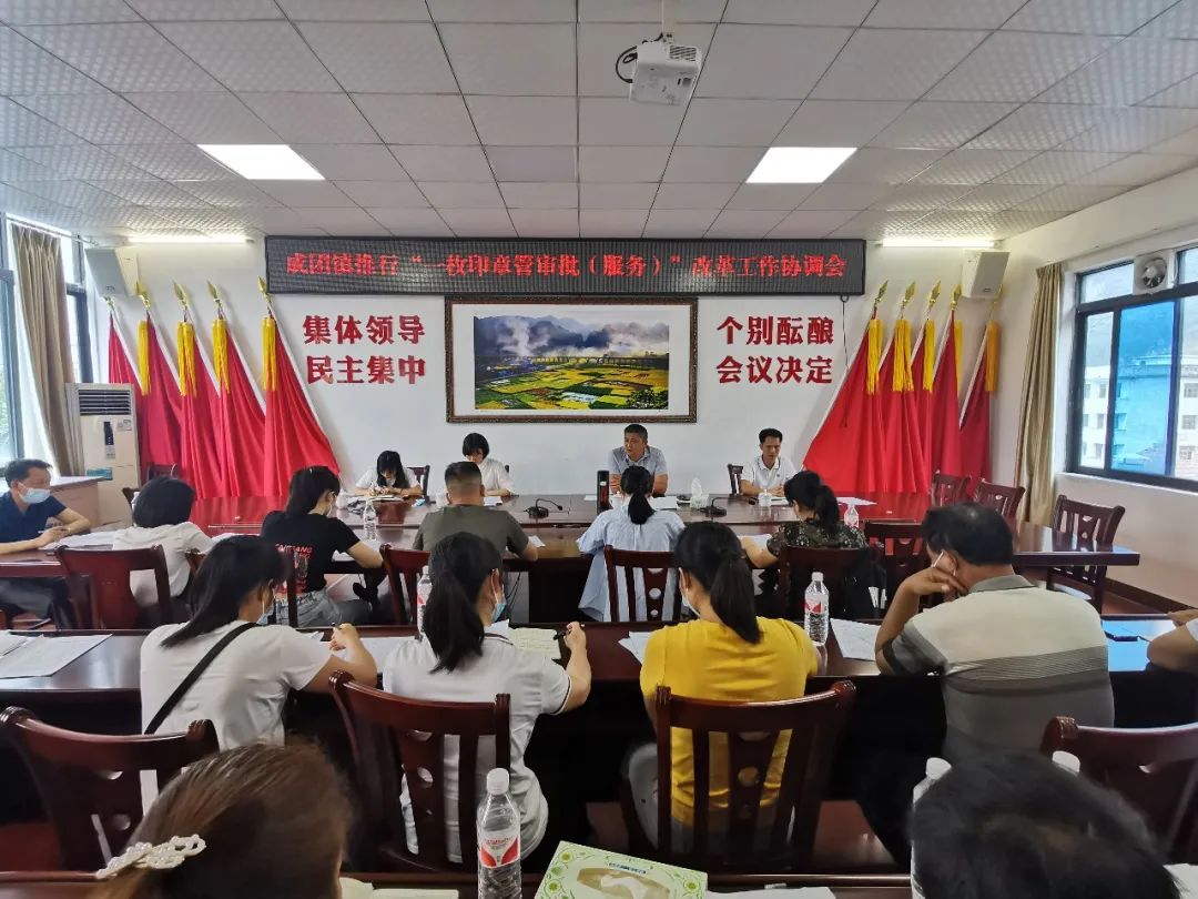 组织相关负责人、各村(社区)党支书召开成团镇推行“一枚印章管审批(服务)”改革工作协调会,聚焦群众普遍反映的共性需求,整合归并乡镇行政审批和公共服务职责,在成团镇政务服务大厅推行“一窗受理,全科办理”,推动基层政务服务标准化、规范化、便利化。