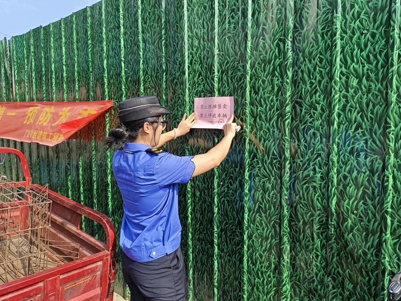 “我看这边有空地就摆了,没注意到影响这么大。” 水果摊主覃师傅有些不好意思。队员们指着施工标识牌解释:“这段路两旁在施工,摊位挡在这儿,不仅堵路,万一施工时掉个工具、溅点泥水,也容易伤到您和顾客。” 说着,队员们还帮李师傅把水果箱搬上车,指引他去专门的摊位。