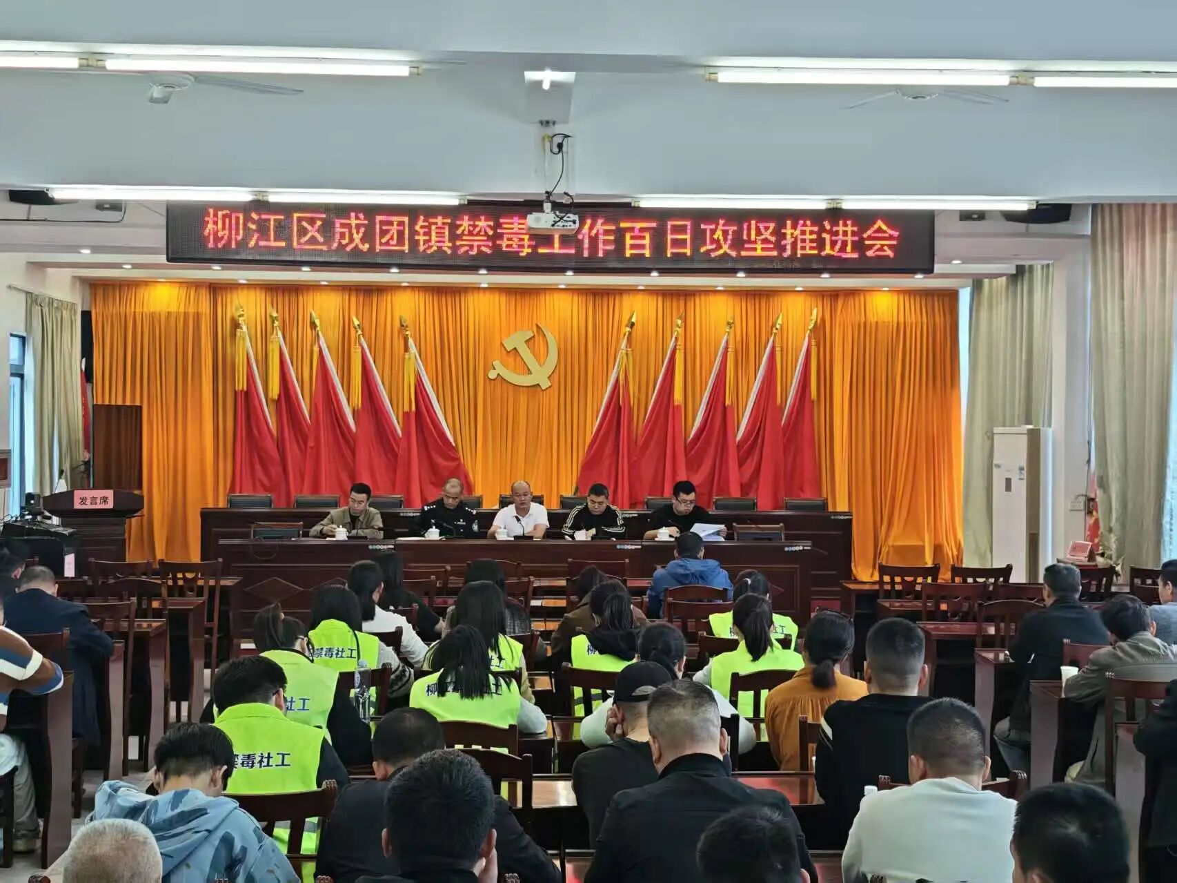 2025年11月11日,柳江区成团镇组织召开禁毒工作推进会,精准传达学习柳州市领导赴柳江区禁毒工作调研指示精神,系统复盘近期“四个100%”全覆盖攻坚成效,深入研判当前毒情形势,全面部署下一阶段重点任务。各村(社区)党支书、禁毒办全体人员、派出所及相关职能部门负责人参会,层层压实责任、凝聚攻坚共识。