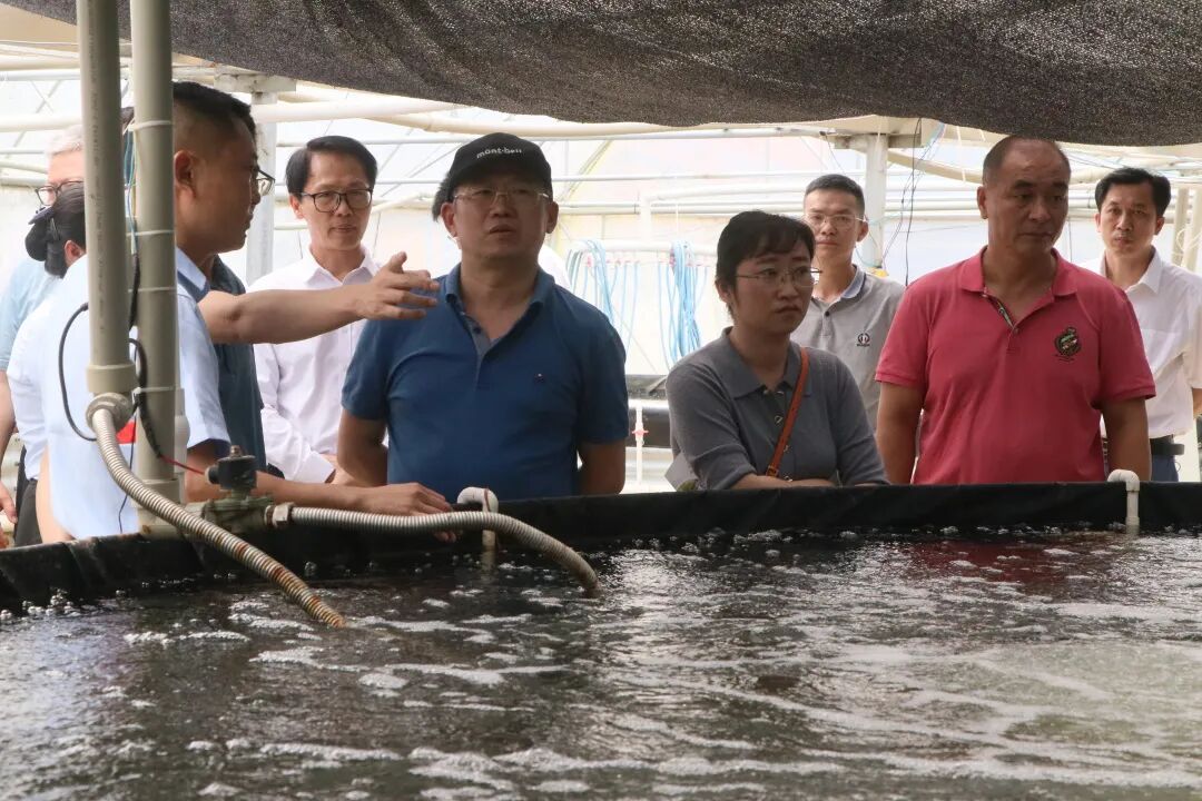 5月18日,中国水产科学研究院党组书记、副院长陈金发,自治区农业农村厅副厅长、党组成员梁纪豪,自治区水产科学研究院党委书记江林源等一行10人莅临成团镇绿嘉园生态农业产业园调研陆基圆池对虾养殖基地发展情况。