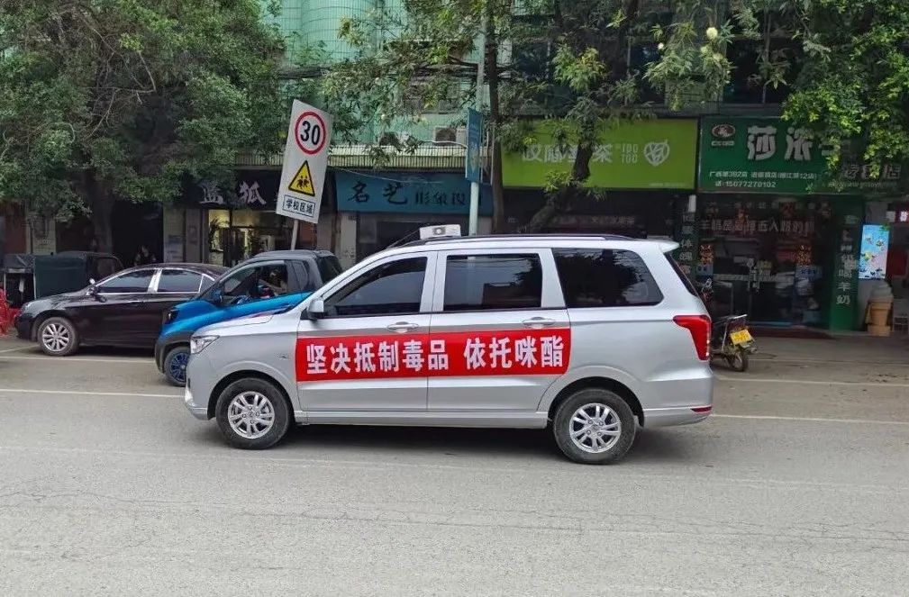 活动期间,通过禁毒宣传车流动广播宣传的方式,在集市、校园周边和村屯巷尾等人群聚集地,循环播放禁毒宣传音频,同时还向过往群众发放禁毒宣传手册,详细讲解新型毒品依托咪酯的形态、特征及危害,并呼吁群众发现身边有涉毒可疑人员和事件要立即向有关部门举报。重点对校园周边商户宣传禁毒法律法规,倡导严把关零食、饮料等食品进货渠道,决不能贩卖类似“上头电子烟”等有“毒”物品。