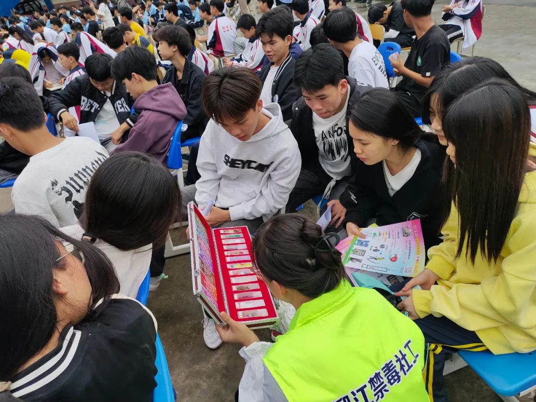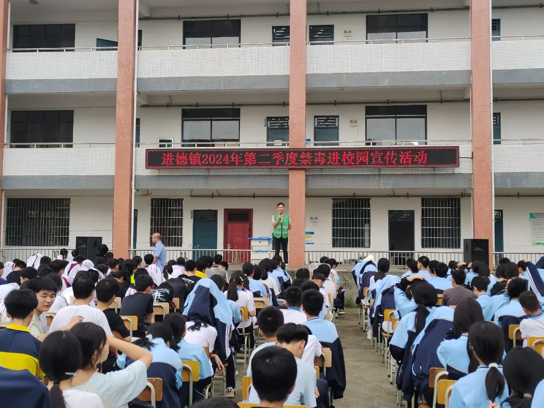 除此之外,禁毒宣传员走进进德镇一中,开展禁毒科普与法制宣传活动,通过播放专题片、典型案例宣讲等向同学们科普“依托咪酯”“聪明药”等新型毒品的危害,告诫广大师生珍爱生命,远离毒品,筑牢校园禁毒防线。
