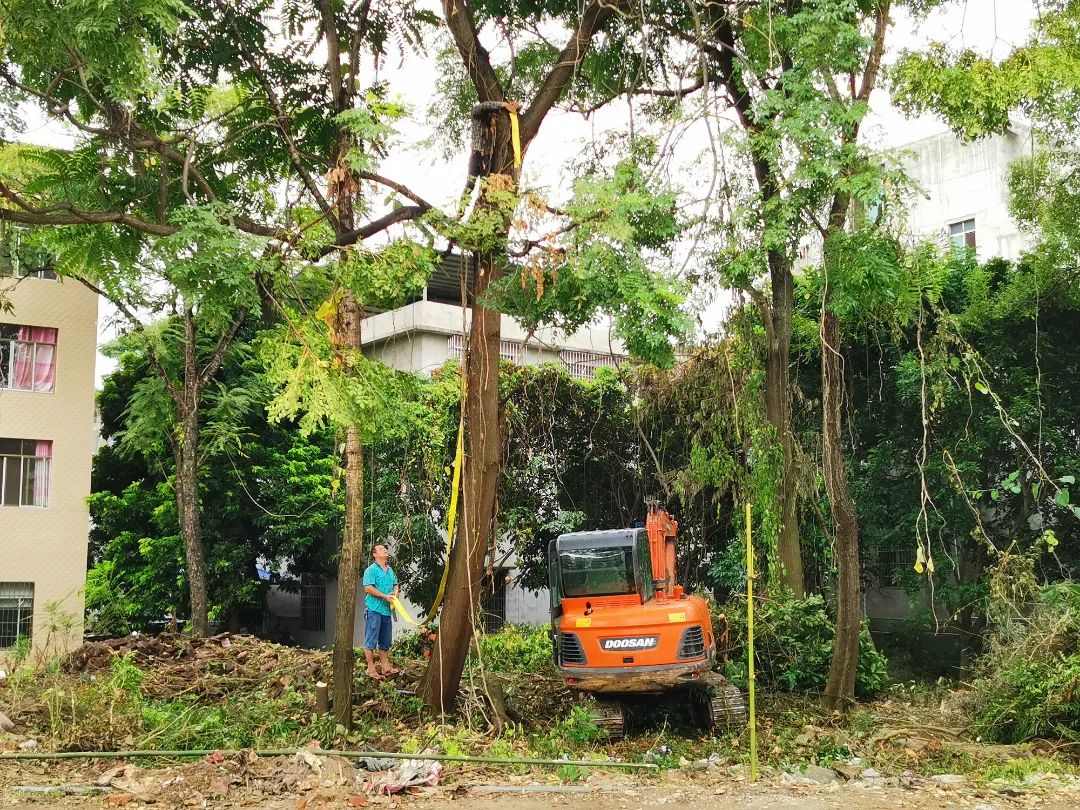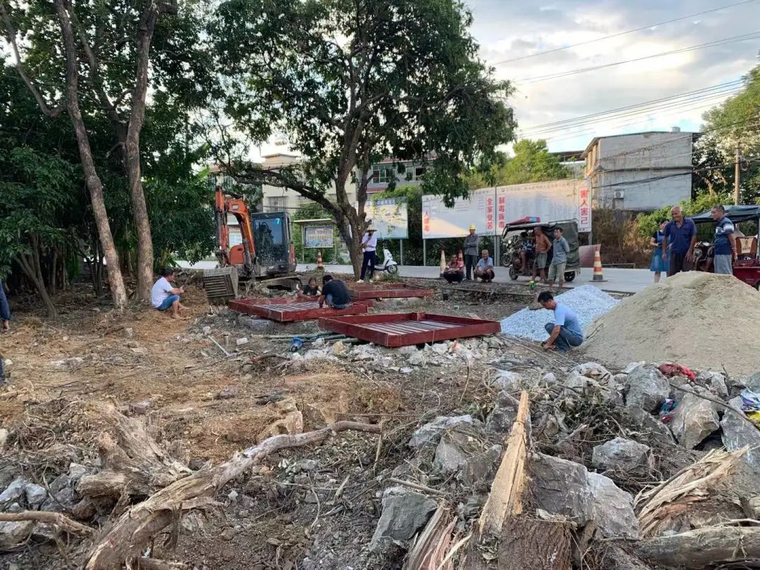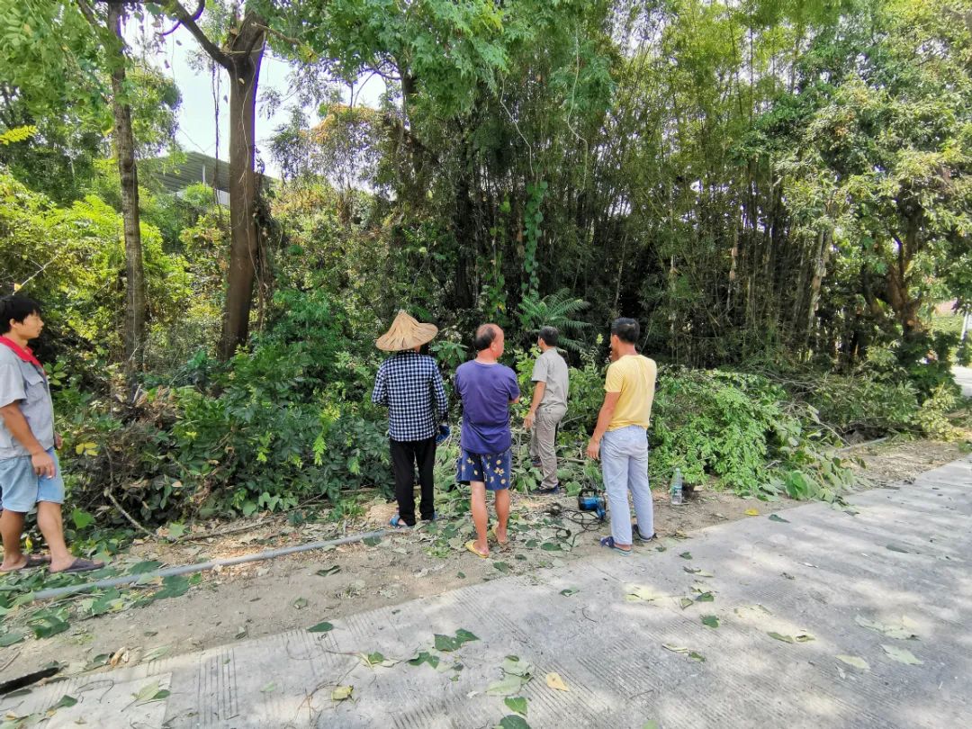 动工前的地块坑坑洼洼,杂草丛生,树木与竹林互相缠绕。清除杂草树木、平整地块就是一个大工程。村委干部迎难而上,联系专业人员、发动群众,积极沟通,共同参与到等候区建设中。