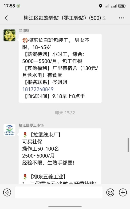 “以前找零工得四处打听,现在群里一有合适岗位就推送,报名也方便,没多久就上岗了!”刚通过服务群找到工作的覃大姐说。拉堡镇以“企业服务群+零工驿站群”构建线上就业服务体系,招募65家企业入群发岗,为3个零工群近1300名待业候工群众提供就业招聘信息6900余条、岗位超20000个,累计促成上岗就业300人次,“招工难”“找活难”不再愁!