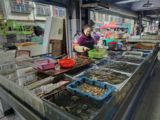 细节里藏着真功夫,更藏着对居民的贴心关怀。为了给周边6020户近2万名居民提供更便利舒适的购物体验,市场在细节上可谓精雕细琢。全面升级给排水管道,规范污水处理流程,曾经湿漉漉的“湿区”如今干爽整洁;重新科学划分经营业态,鲜、活、生、熟、干、湿分区明确,还设置了清晰的导向标识,再也不用东奔西跑找摊位;以“超市化”标准打造整体环境,蔬菜区、肉类区、干货区等分类有序,一目了然。