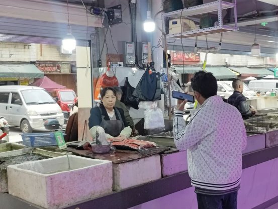 傍晚五点高峰期,小编来到升级改造后的市场,看见地面干净整洁、铺位整齐划一、门头上的装饰门牌也焕然一新......老菜市场焕发新机,赢得了附近居民的点赞。