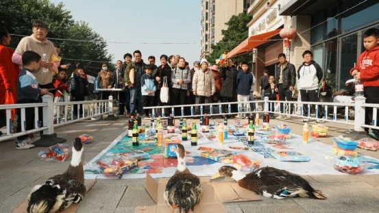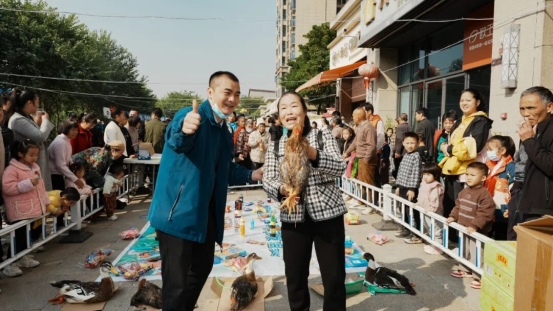 活动伊始,趣味游园会率先点燃邻里热情。“套中了!套中了!”一位阿姨在套圈游戏中成功收获肥鸡。铲米大战、零食抱抱项目中,邻里相互鼓励、彼此喝彩,彰显出友爱互助、文明参与的精神风貌。