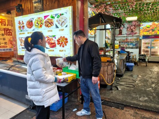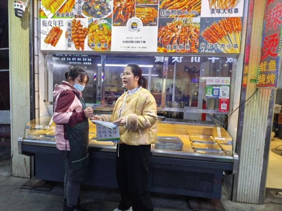 在餐饮夜市,工作人员向经营者及食客宣传文明宵夜酗酒不滋事,讲解相关治安法规和矛盾纠纷案例,并张贴宣传标语,引导居民文明就餐、降低音量,避免因噪音引发纠纷,全力守护社会平安。