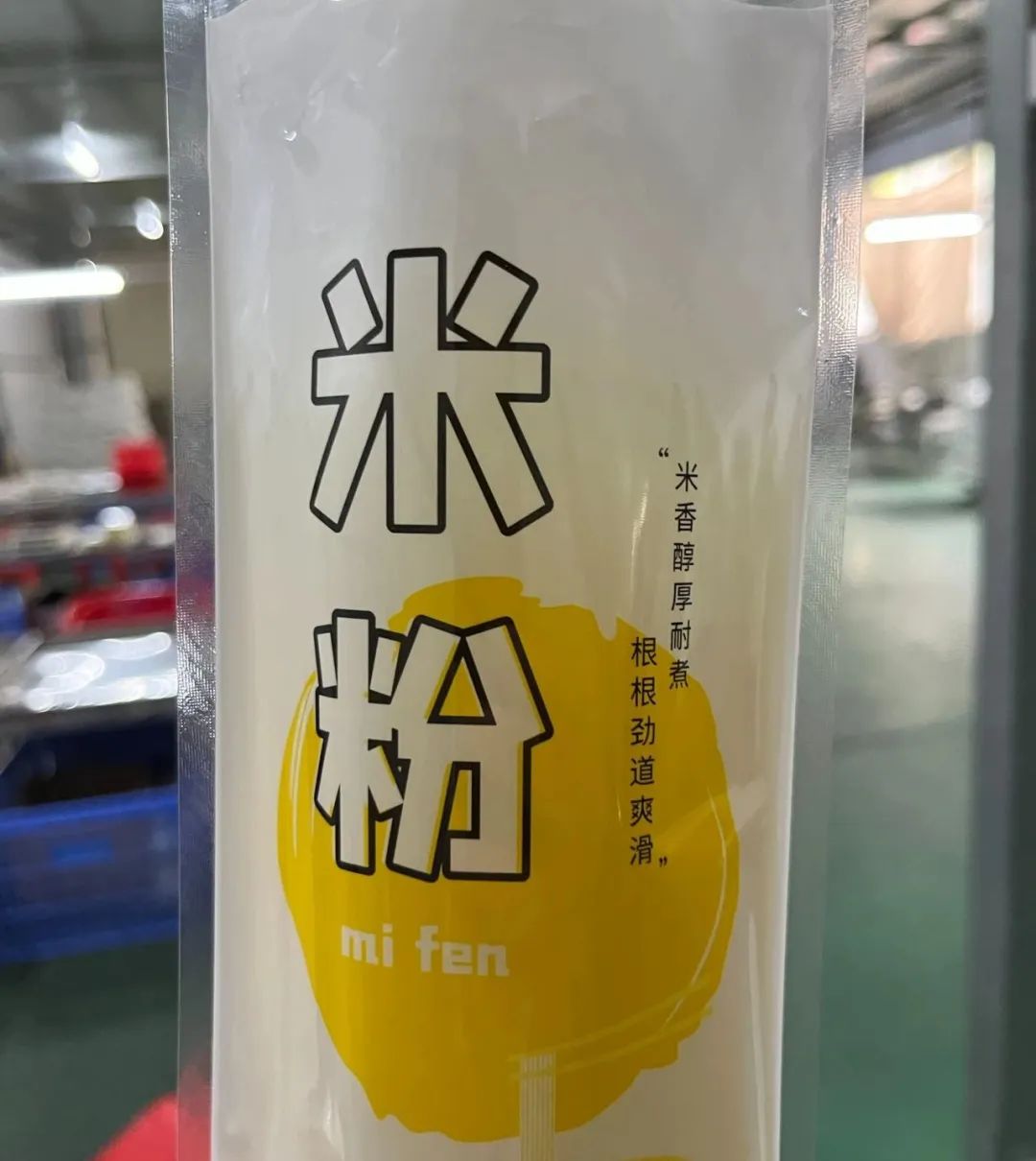 来到分拣车间,扑面而来的就是一股干米粉特有的清香味,工作人员正将产品包装分拣,最终成为袋装螺蛳粉的灵魂主角——干米粉。