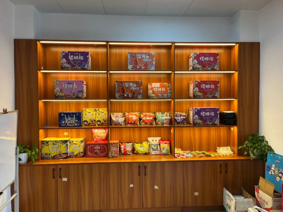 蟹黄味螺蛳粉、螺蛳粉火锅底料、“反诈骗”主题螺蛳粉礼盒...走进拉堡产品展厅,琳琅满目的“螺小匠”系列产品令人大开眼界。