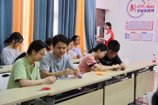 在“穿针乞巧”趣味活动中,大家两两组队,一人拿针一人拿线,合力将彩线穿进针孔,“沉浸式”体验传统民俗活动,在轻松愉快的趣味游戏氛围中感受“七夕乞巧”的美好寓意。