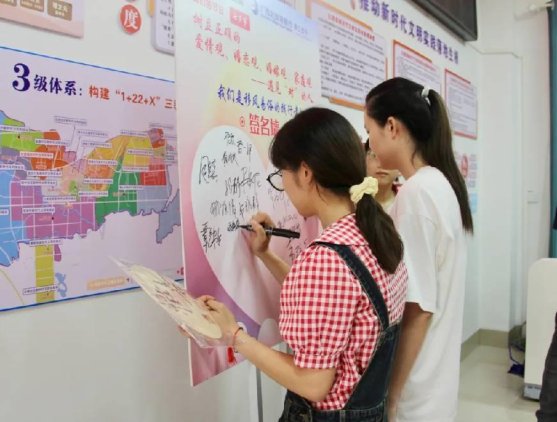 在场青年纷纷在活动背景板上签名,通过签字的形式表达青年们树立正确爱情观、婚恋观、家庭观,弘扬传统文化,打造和谐家庭,共创幸福生活。