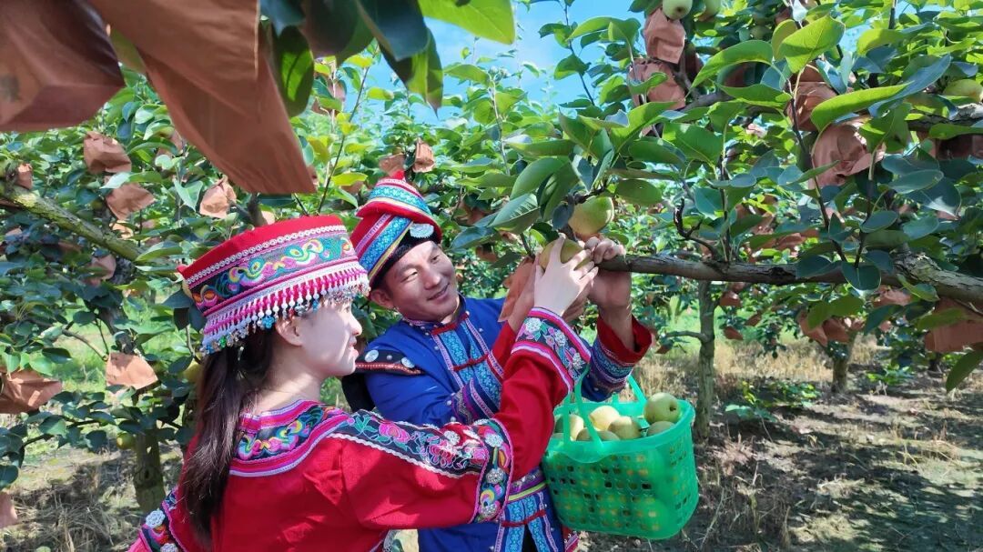 近年来,里高镇大力发展青花梨产业,通过“合作社+农户”模式,带动当地村民增收致富。今年青花梨长势喜人,预计产量较往年有所提升,市场前景广阔。目前,新鲜采摘的青花梨已陆续上市,欢迎广大市民、客商前来采购,您可前往里高镇青花梨种植基地现场采摘,与身着民族服饰的青年们一同体验采摘乐趣,感受田园风情与民族文化的交融,尽享新鲜美味,共同助力乡村振兴。