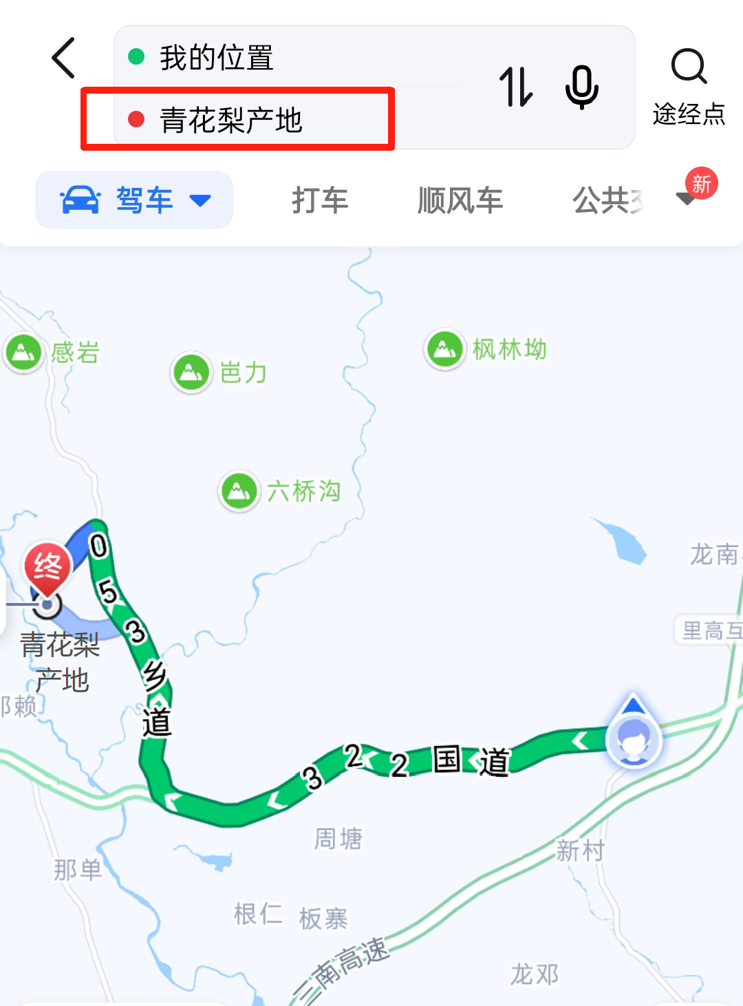 路线2:新柳南高速路口里高出口,沿里高集镇方向行驶约8公里到达保仁村路口,右转沿着乡道行驶约2公里便可到达青花梨园。