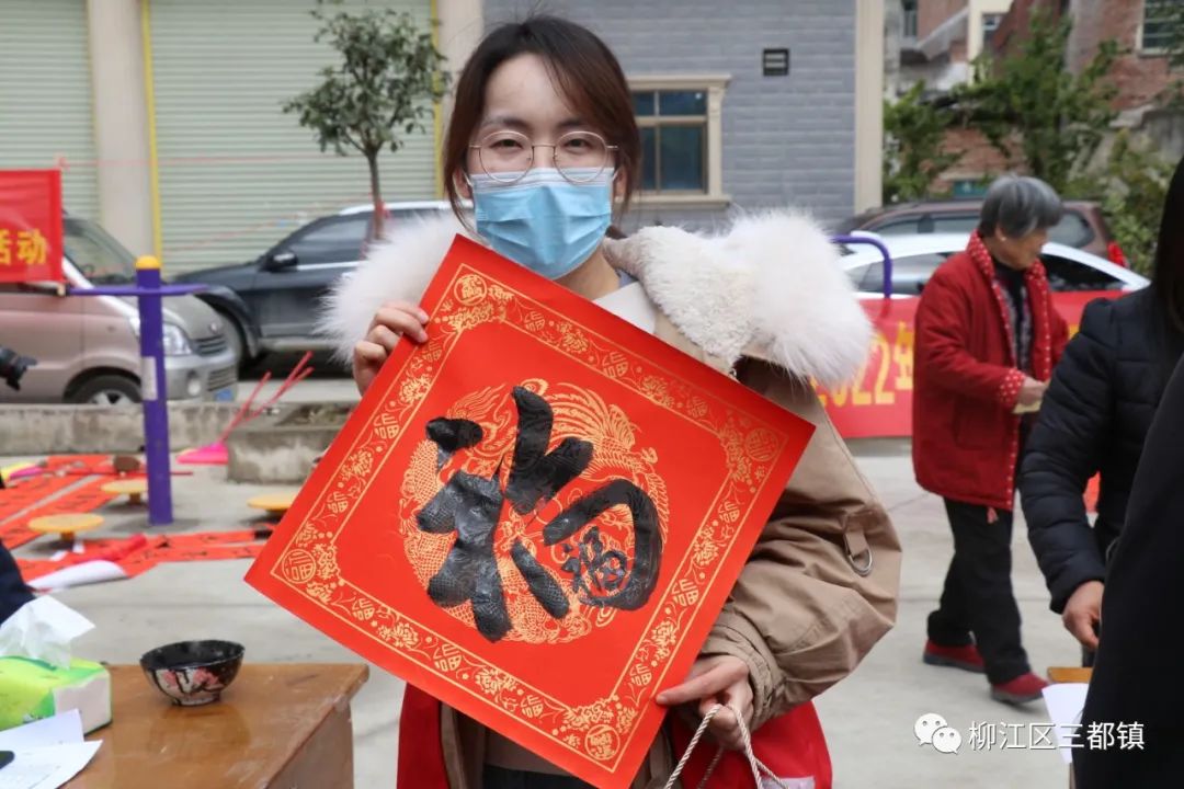 “千门万户曈曈日,总把新桃换旧符。”桃符,也作春联。贴春联是我国辞旧迎新的传统习俗,一幅幅红色的春联是老百姓们过年必须要有的仪式感。1月18日上午,在三都镇三都社区的党建小广场上,区文联、区文化馆、区书法协会及三都镇新时代文明实践所联合开展“文化进万家”春节送福联志愿服务活动,免费为群众写福字、赠春联。此时,小广场上晾晒着不少书法家们刚刚写好的福字和春联,满眼喜庆的颜色直接将年味拉满!